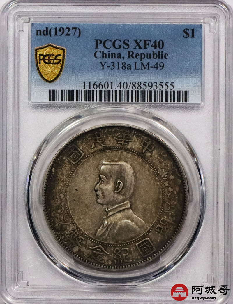 Lot:15 卷尾酱彩 孙像小头壹圆 PCGS XF40