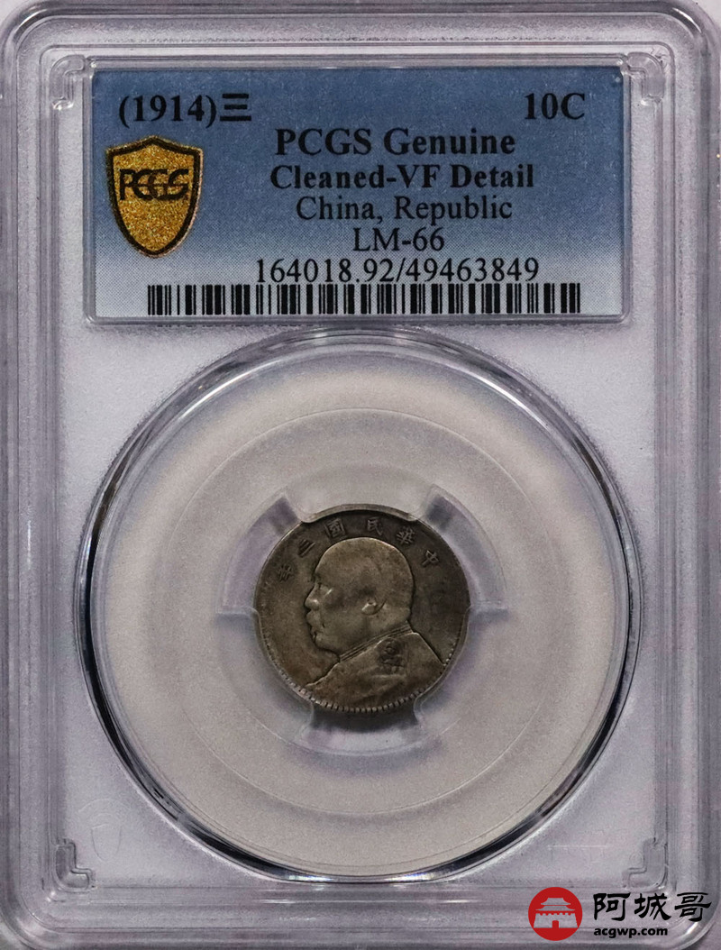 Lot:9 原味三年大头壹角 PCGS VF