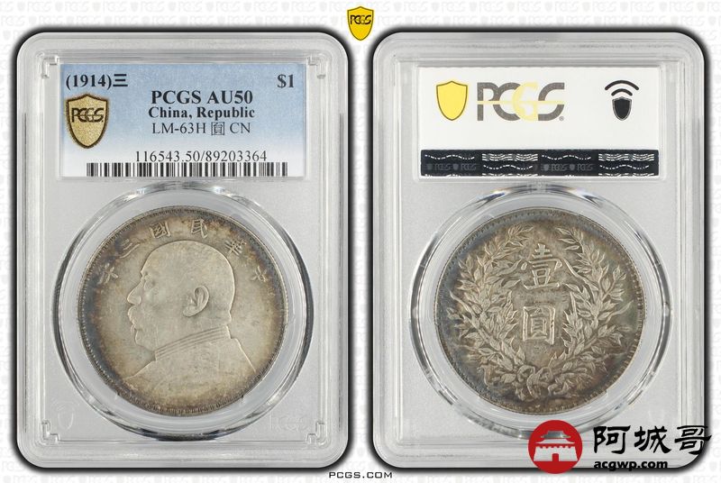 Lot:24 原味环彩 三年大头三角圆 PCGS AU50