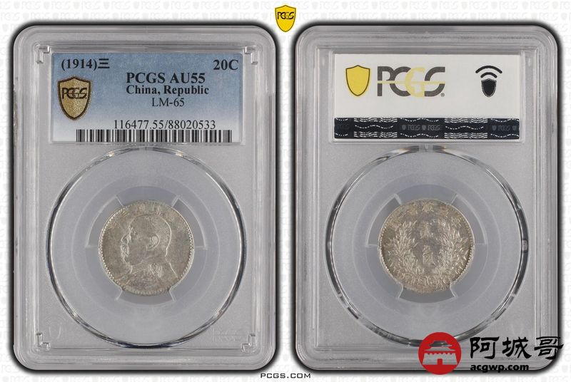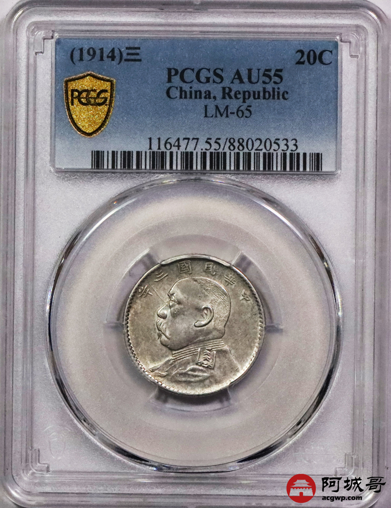 Lot:26 深打底光 三年大头福建贰角 PCGS AU55