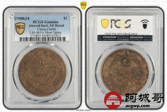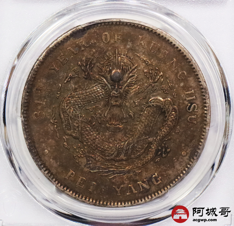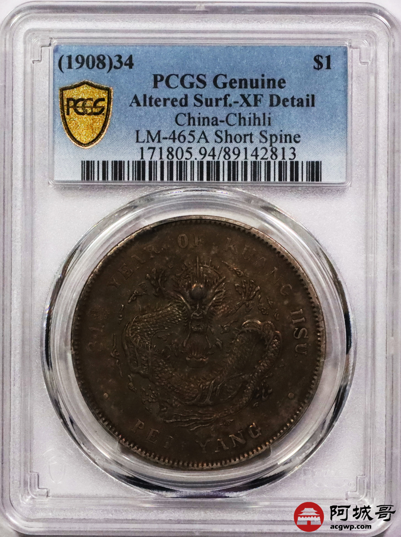 Lot:17 深打爆龙鳞 五彩包浆 北洋34七钱二分短尾龙 PCGS XF