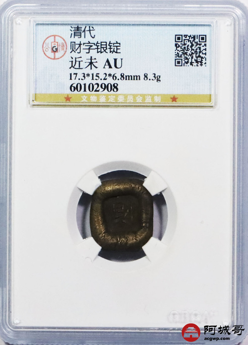 Lot:19 清代-财字银锭8.3克 公博 近未AU
