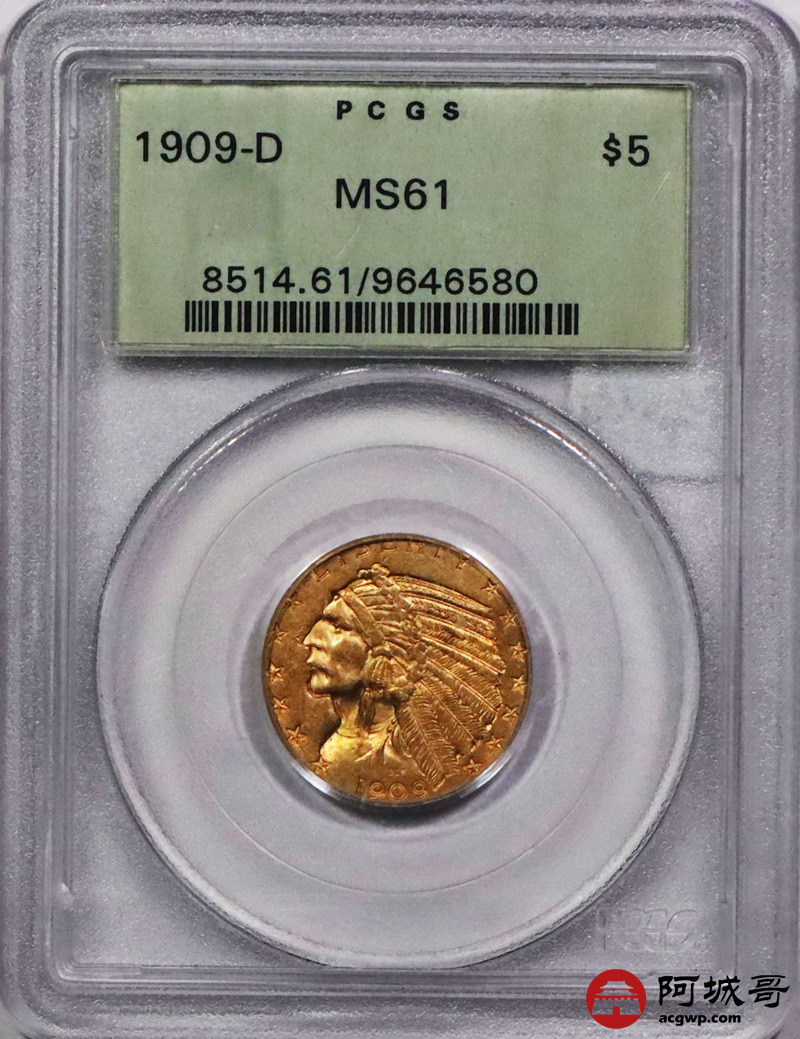 Lot:10 1909年印第安人像5美元金币 PCGS MS61