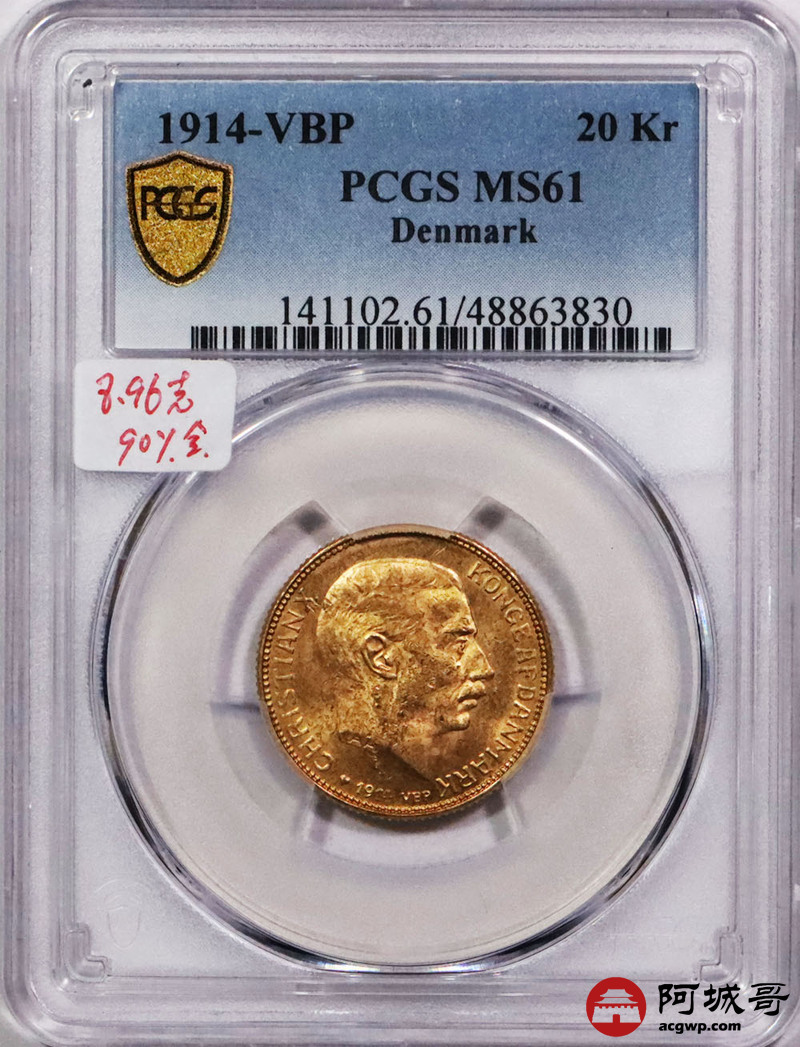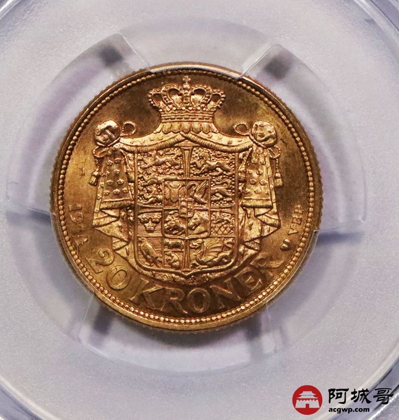 Lot:12 1914年丹麦20克朗金币 PCGS MS61