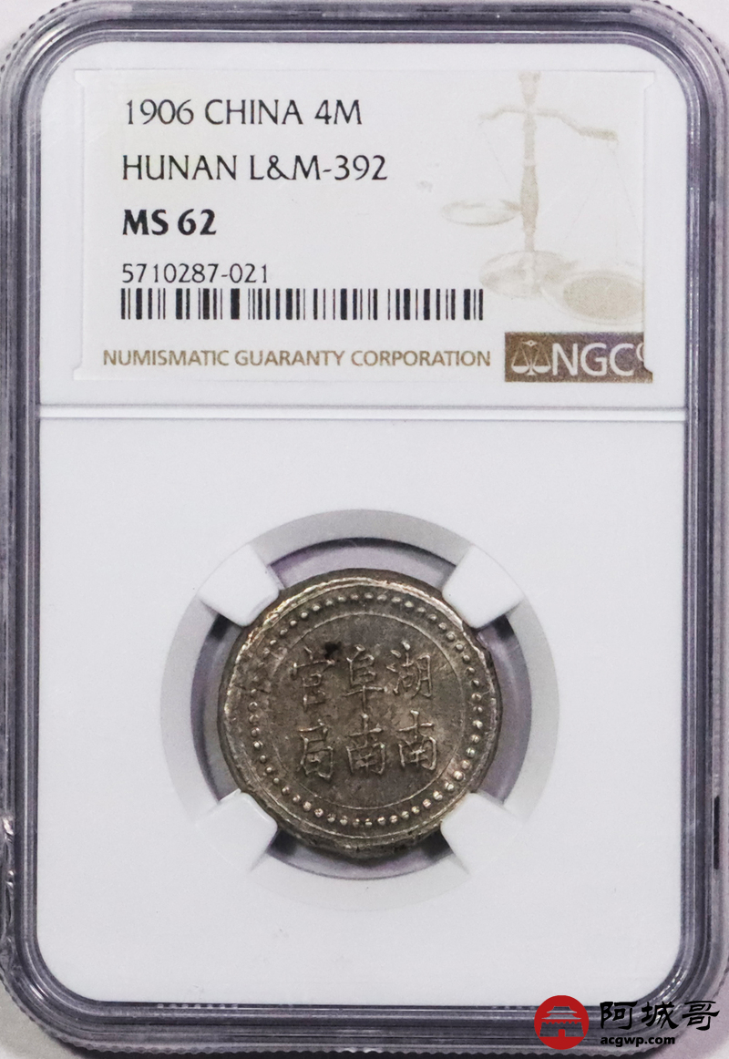 Lot:7 a原光湖南阜南官局 省平足纹银四钱 NGC MS62