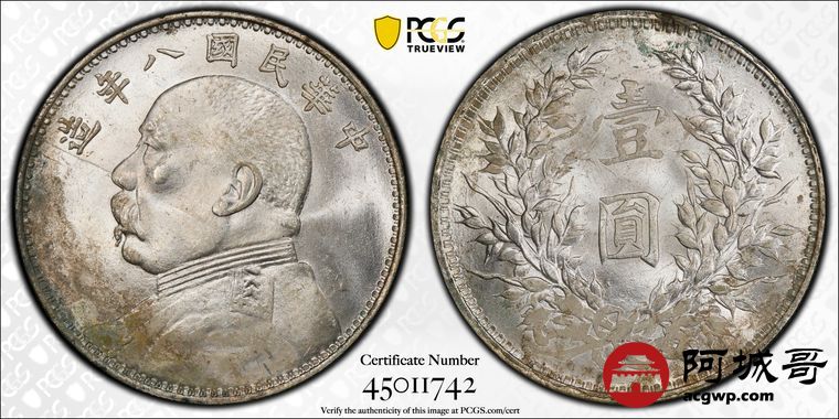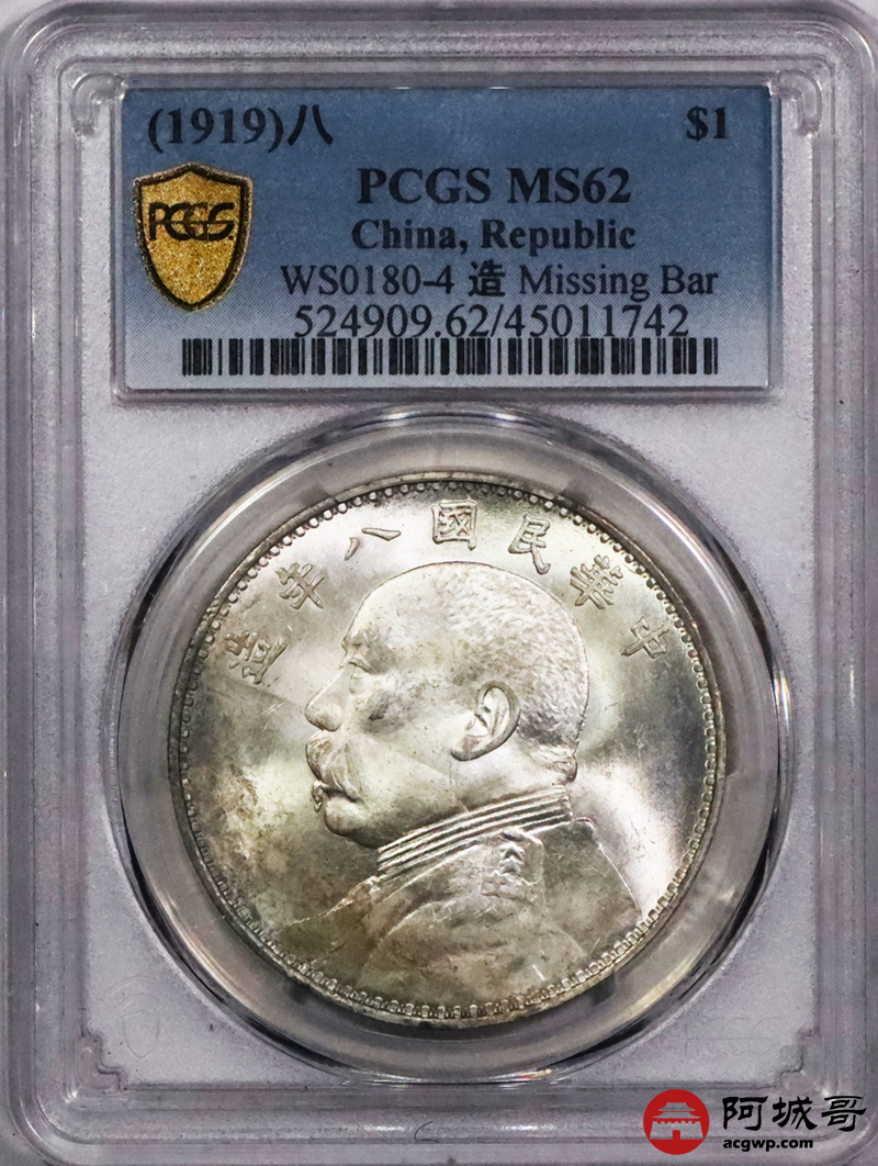 Lot:5 原光 深打 民国八年大头壹圆 上缺口造 PCGS MS62