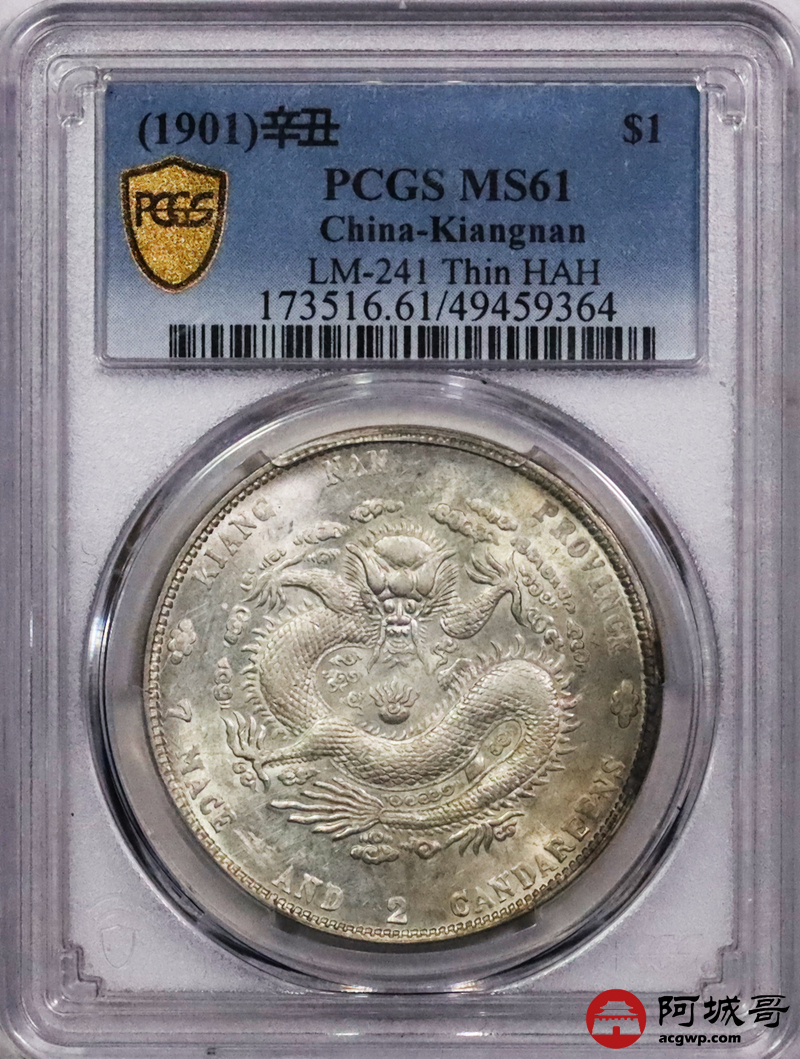 Lot:18 原光淡彩底板 江南辛丑七钱二分 PCGS MS61
