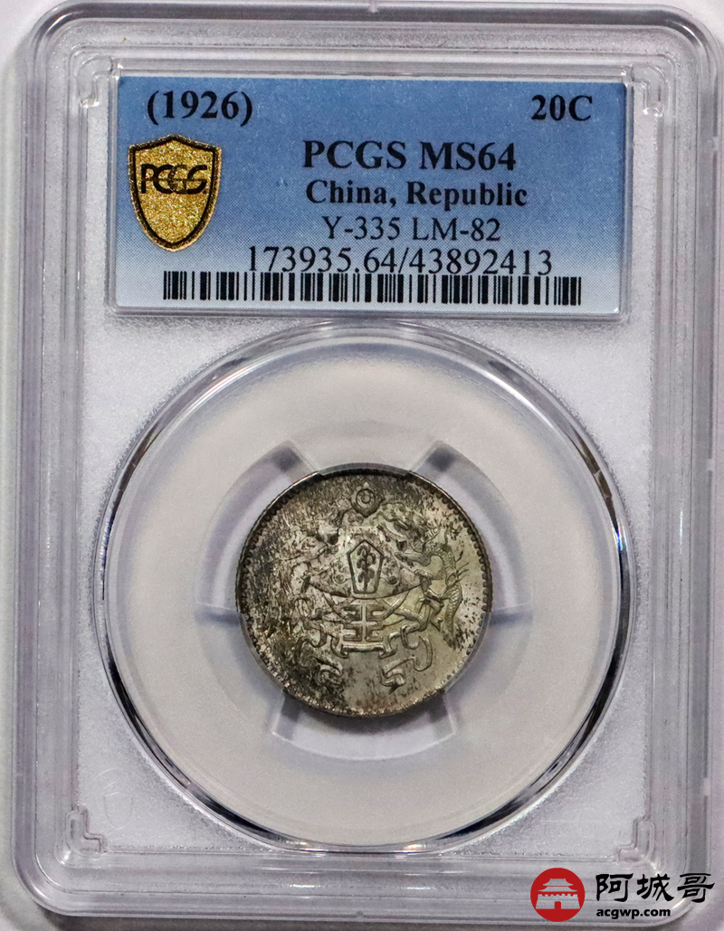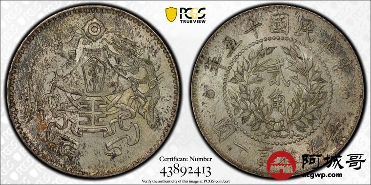 Lot:21 油转光 五彩底板 民国十五年龙凤贰角 PCGS MS64