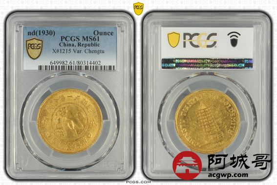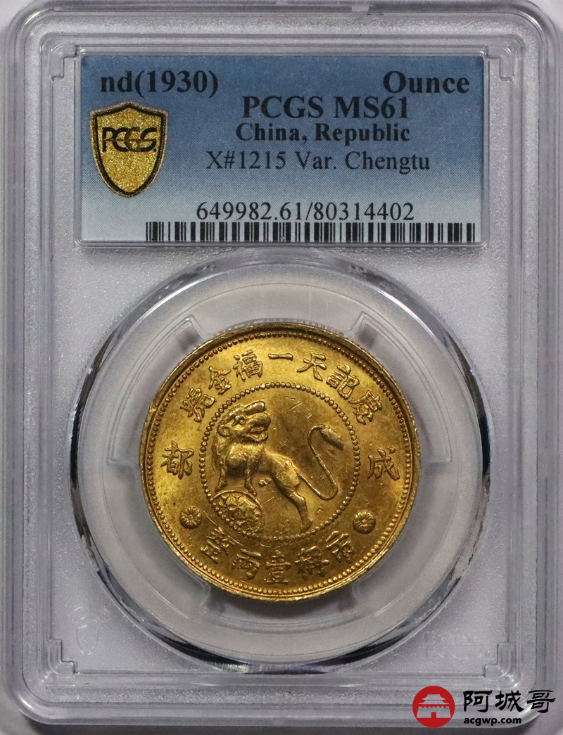 Lot:14 成都庆记天一福金号 一两金饼 PCGS MS61