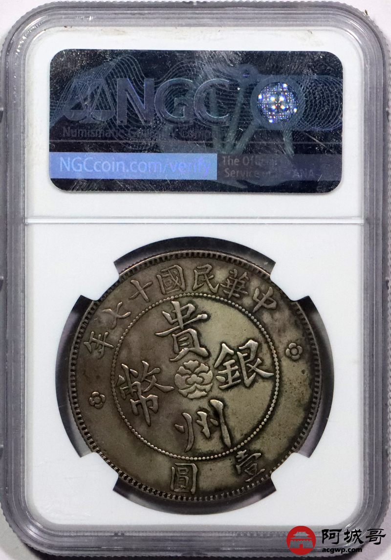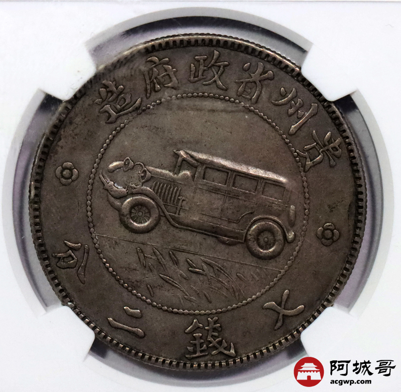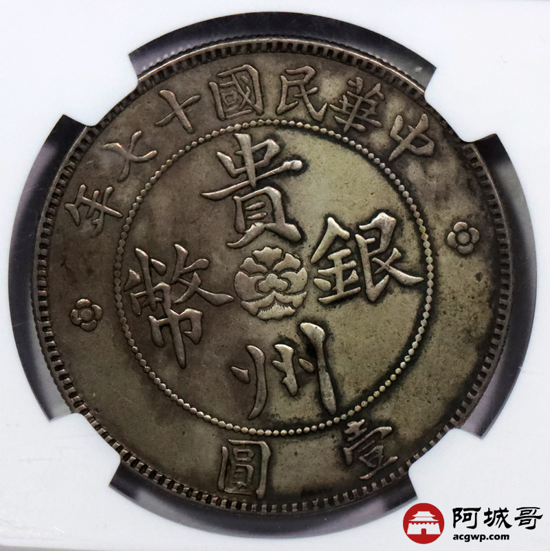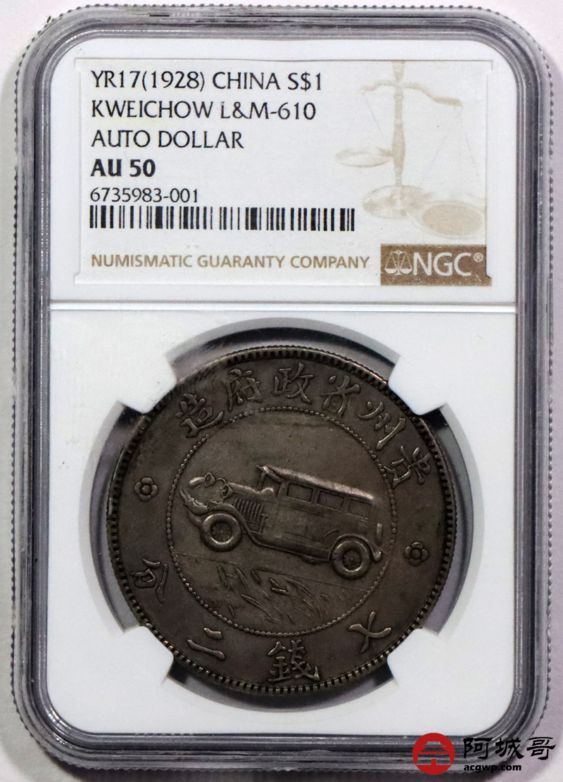 Lot:13 深打 咖色老包浆民国十七年贵州汽车壹圆 三草版 NGC AU50