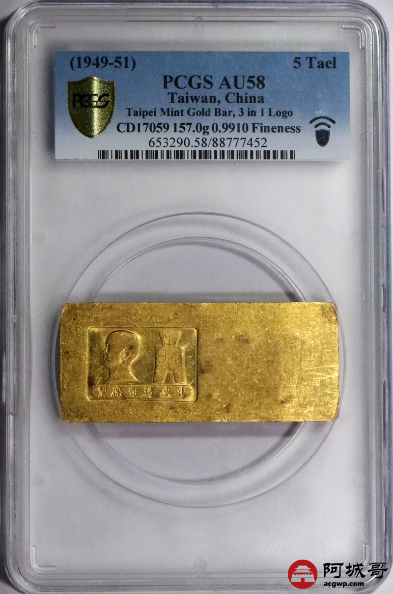 Lot:16 1949-51 中央造币厂孙像布图十两厂条157克 PCGS AU58