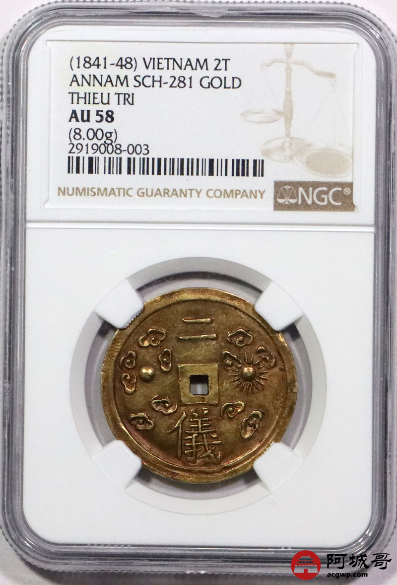 Lot:4 1841-48安南绍治通宝二儀大金币 日月二仪 NGC AU58