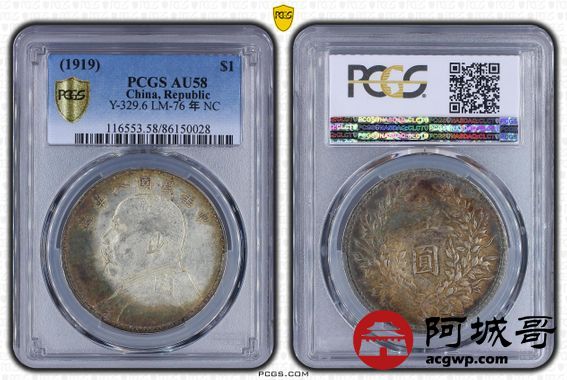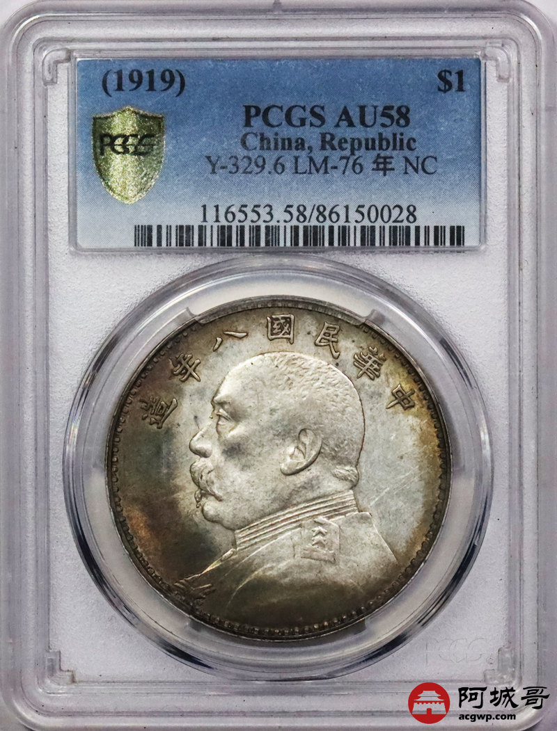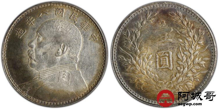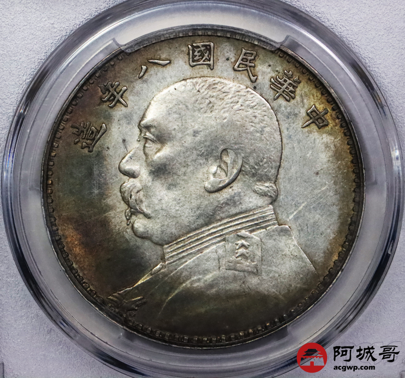 Lot:19 深打 环五彩 八年大头壹圆 PCGS AU58