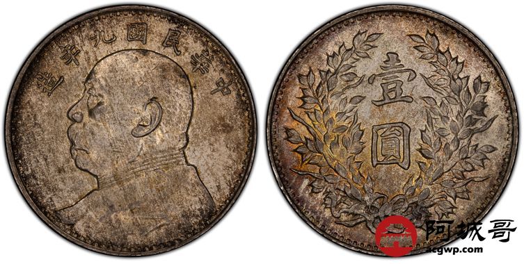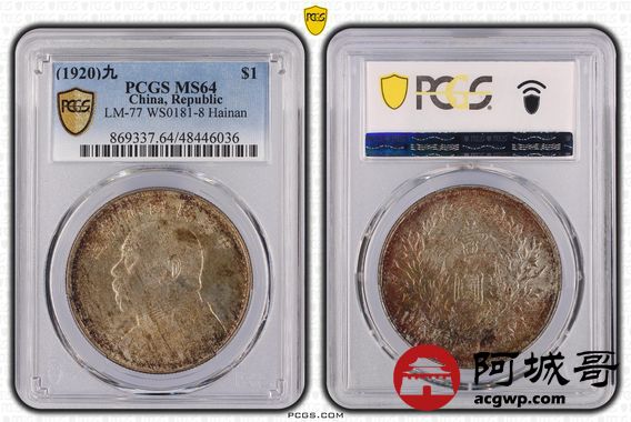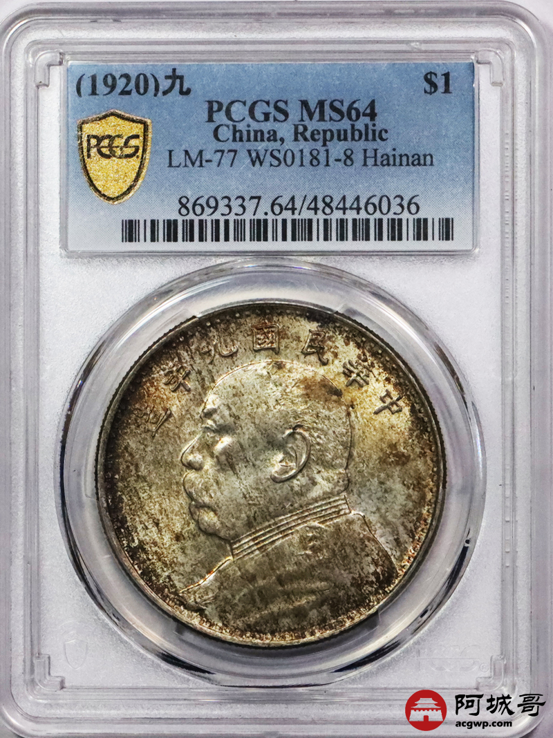 Lot:41 五彩包浆 民国九年大头海南版 PCGS MS64