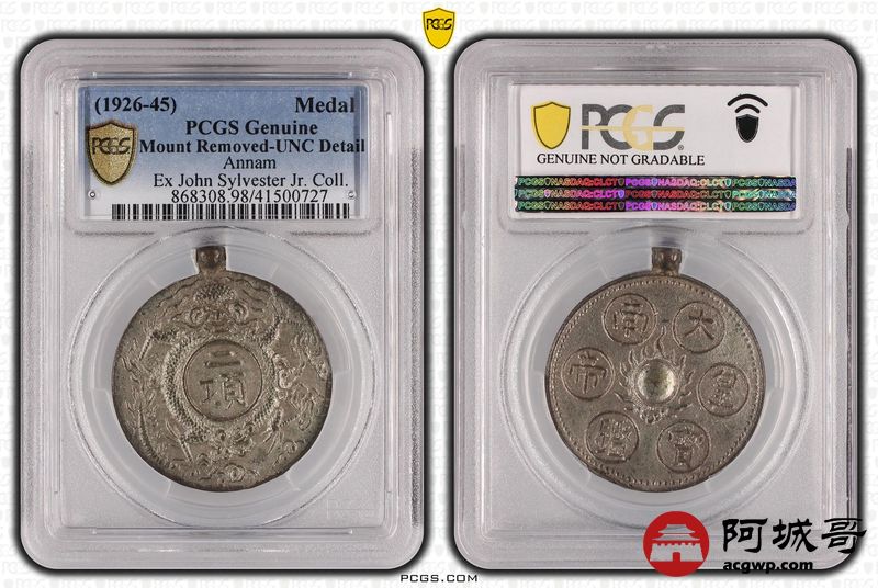 Lot:31 PCGS UNC 1926年大南皇帝宝鑑二项 名家旧藏