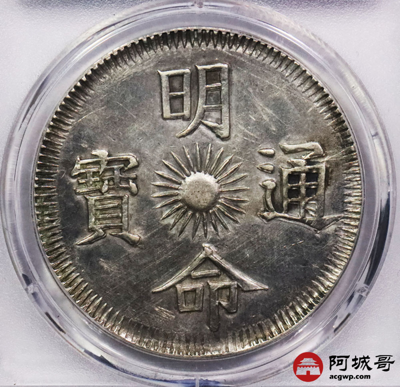 Lot:33 1834安南 明命通宝飞龙七钱大银币 灰色包浆 PCGS AU