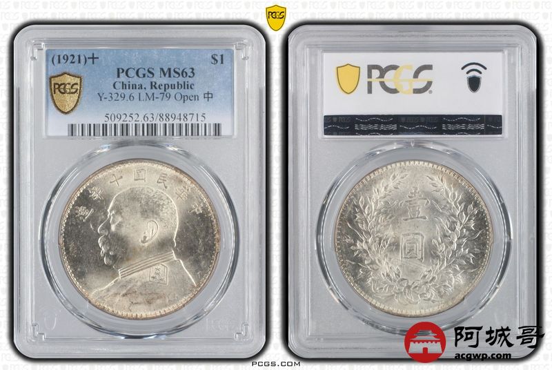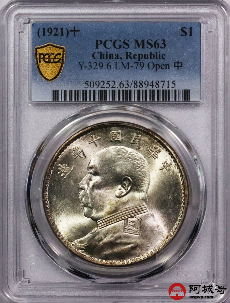 Lot:40 原光 民国十年大头壹元 开口中 PCGS MS63