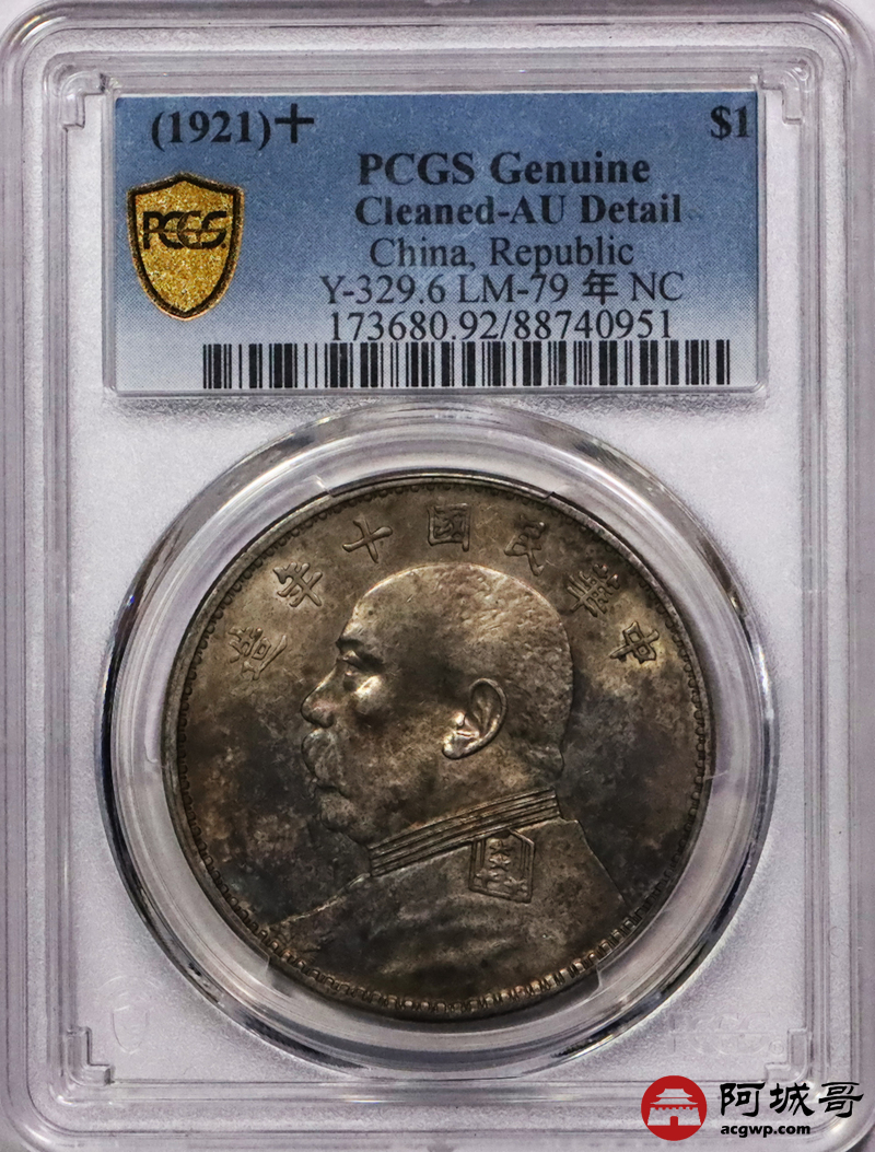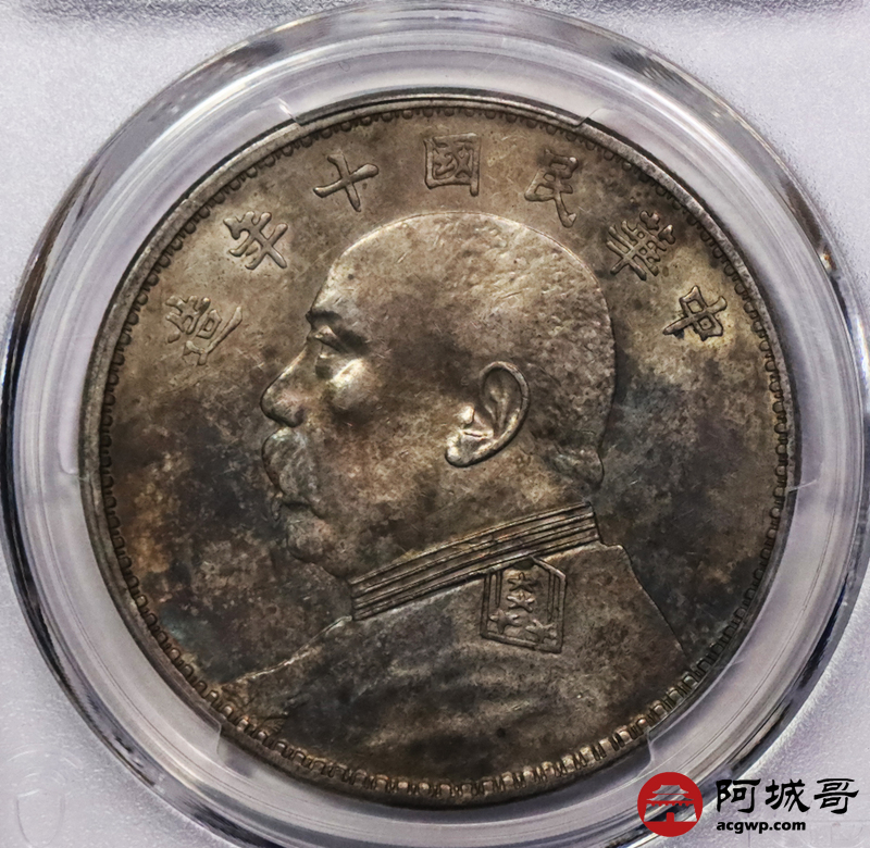 Lot:9 带光 淡彩 十年大头壹元 PCGS AU