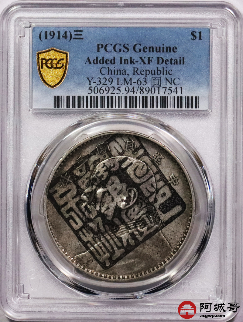 Lot:24 原味 三年大头壹元 墨戳锡邑 银柜 去印不换 PCGS XF