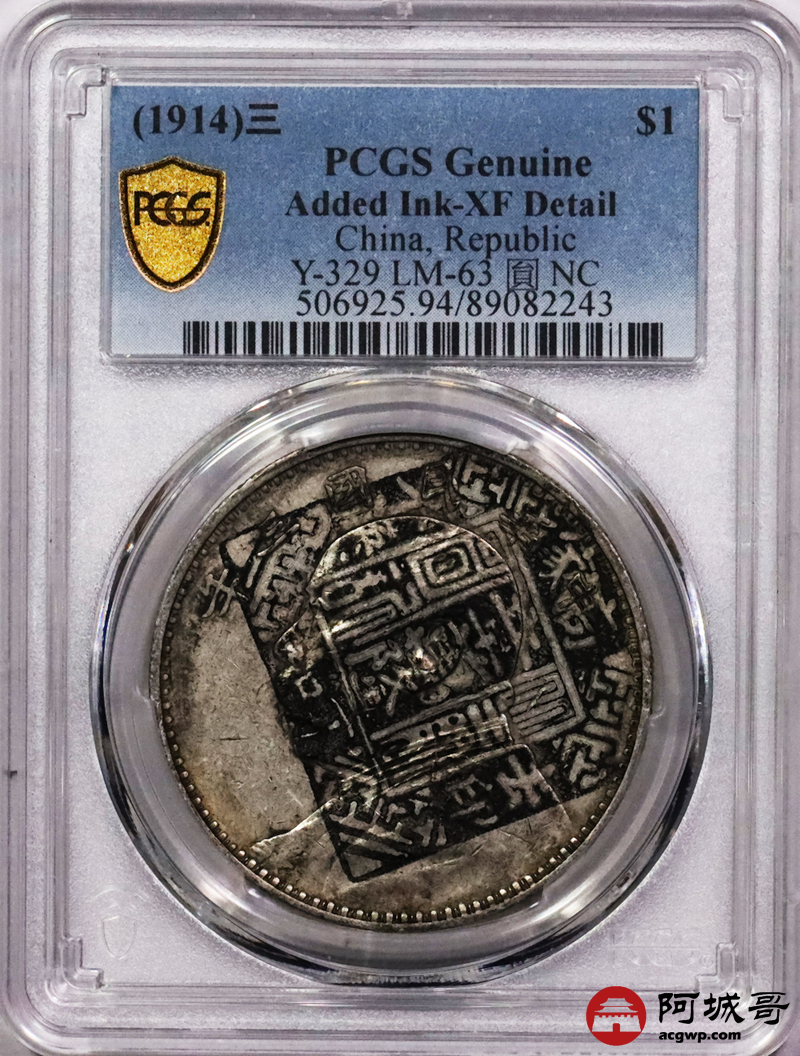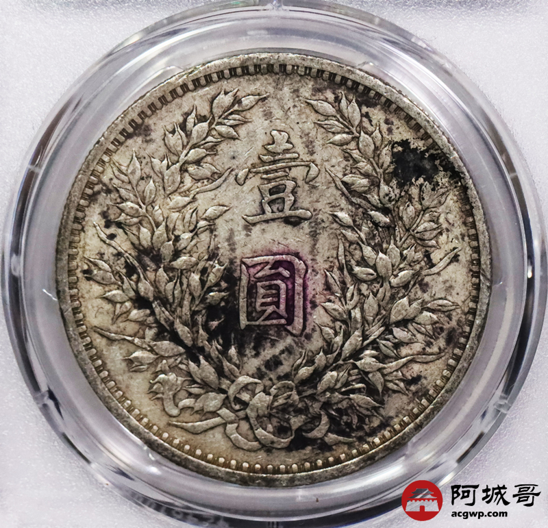 Lot:12 原味 三年大头壹元 墨戳高家丁卯 章萬隆 生财图記 去印不换 PCGS XF