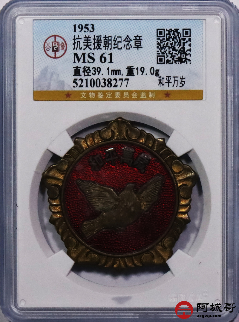Lot:20 1953抗美援朝纪念章 和平万岁 公博 MS61