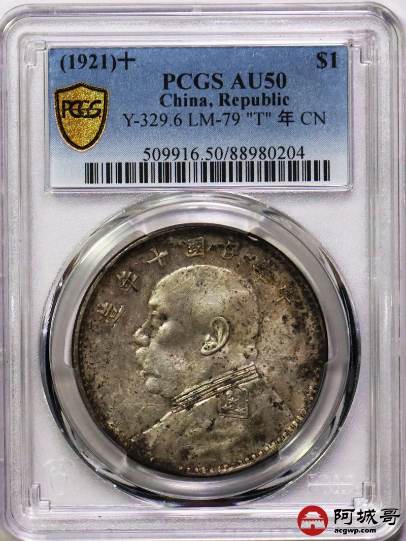 Lot:23 原味底光 十年大头壹圆 PCGS AU50