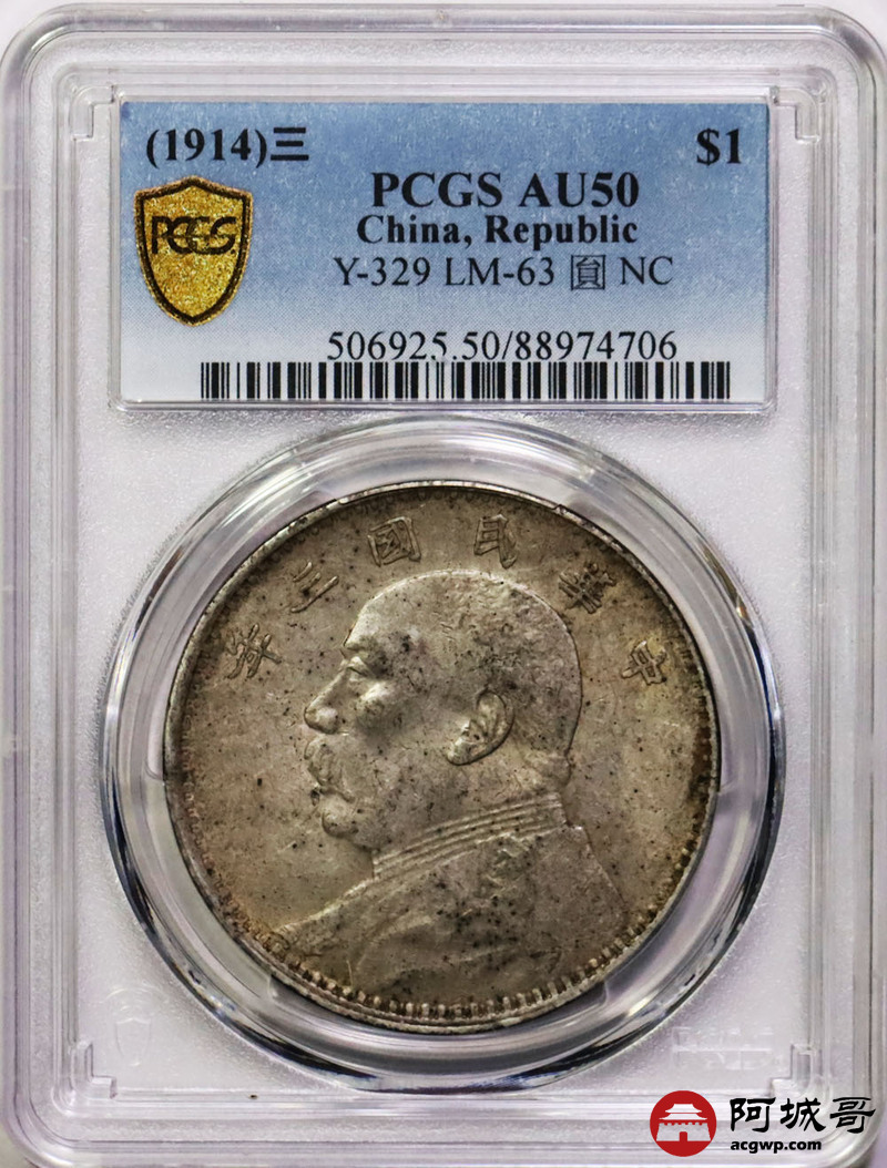 Lot:28 原味老包浆 三年大头壹圆 PCGS AU50