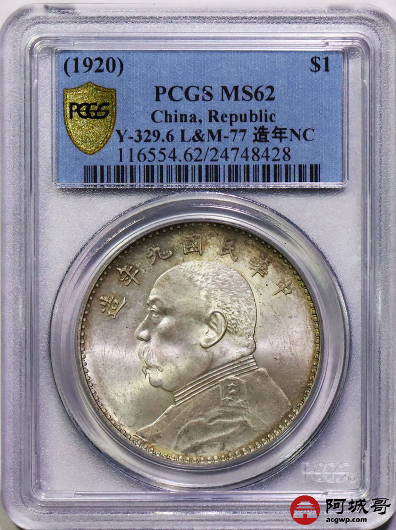 Lot:17 转光 九年大头壹圆 PCGS MS62
