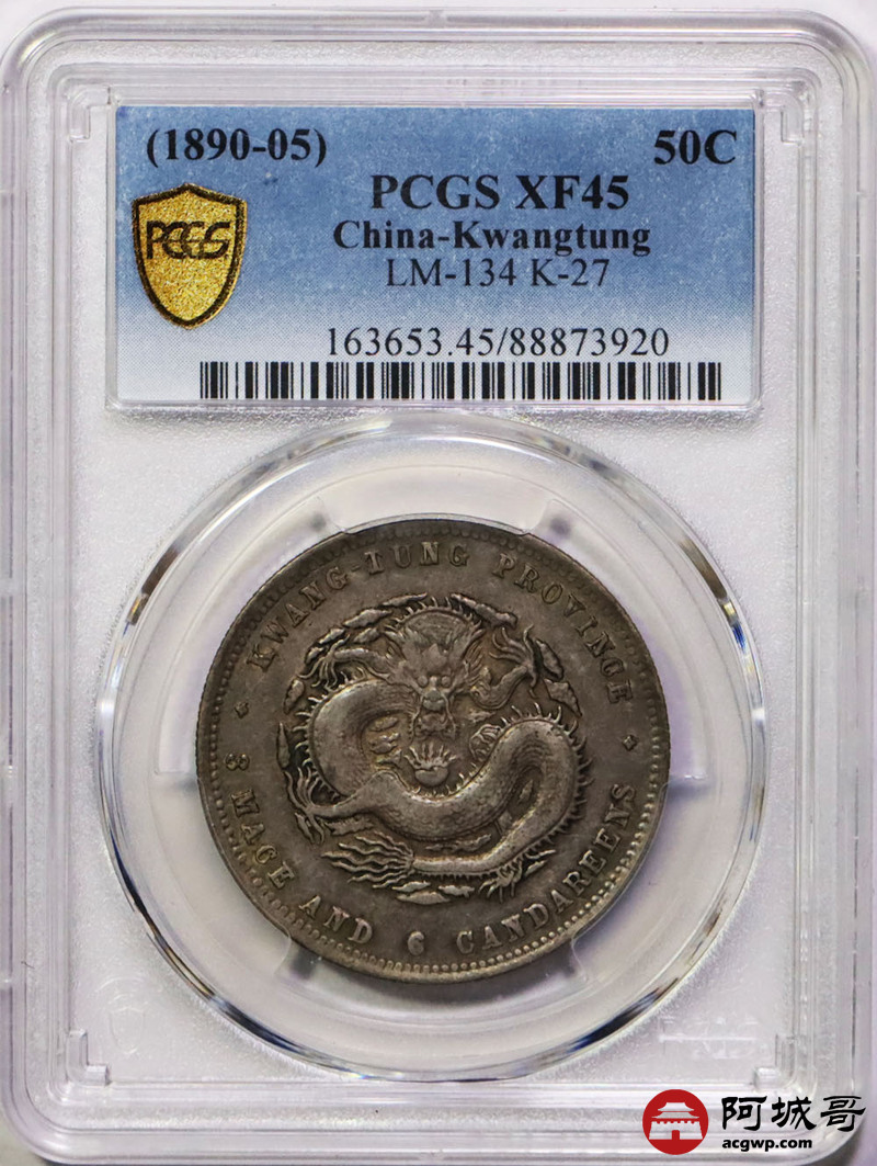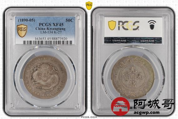 Lot:19 原味 淡彩 广东光绪三钱六分 PCGS XF45