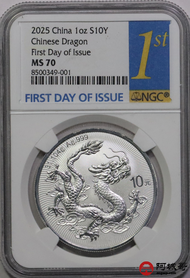 Lot:1 2025年中国龙银币 NGC MS70首日标
