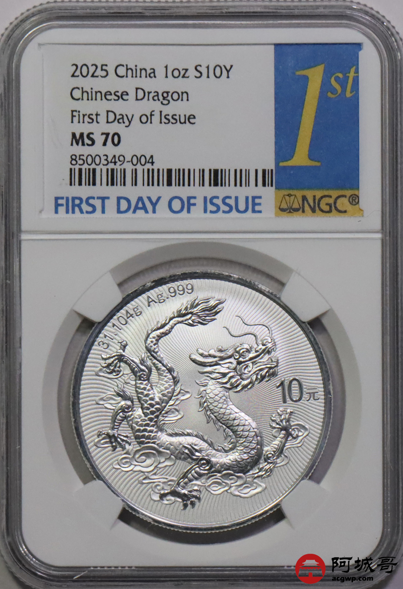 Lot:4 2025年中国龙银币 NGC MS70首日标