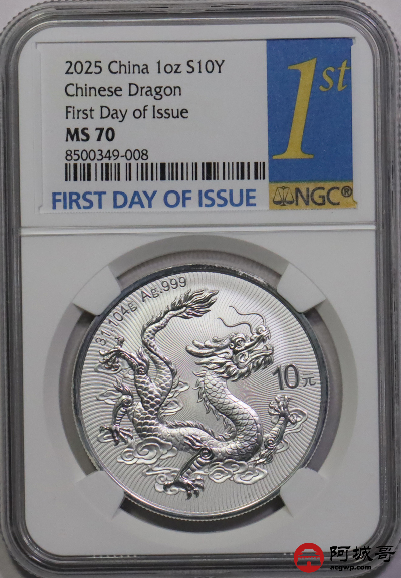 Lot:8 2025年中国龙银币 NGC MS70首日标