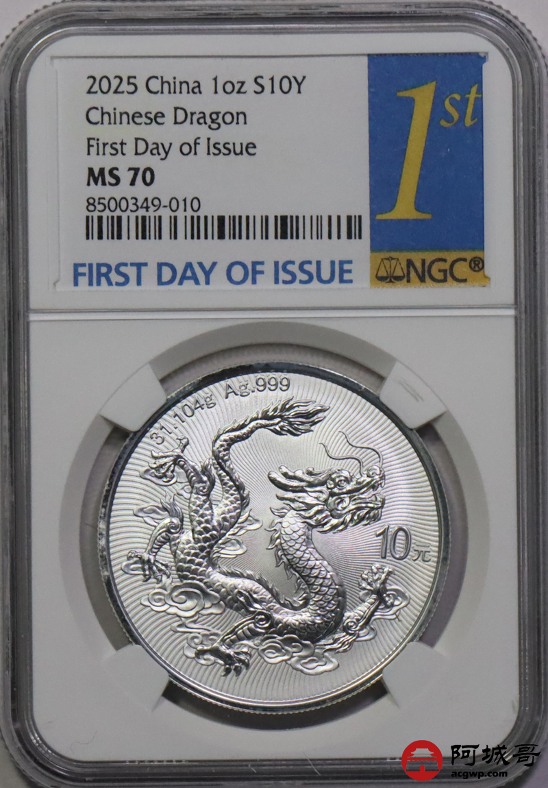 Lot:10 2025年中国龙银币 NGC MS70首日标