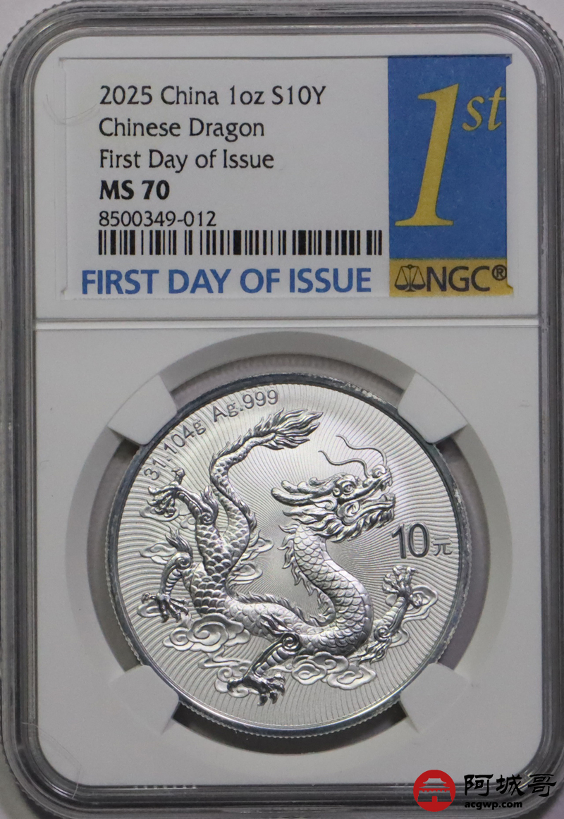 Lot:12 2025年中国龙银币 NGC MS70首日标