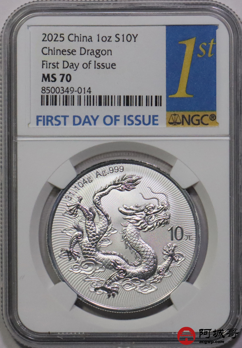 Lot:14 2025年中国龙银币 NGC MS70首日标