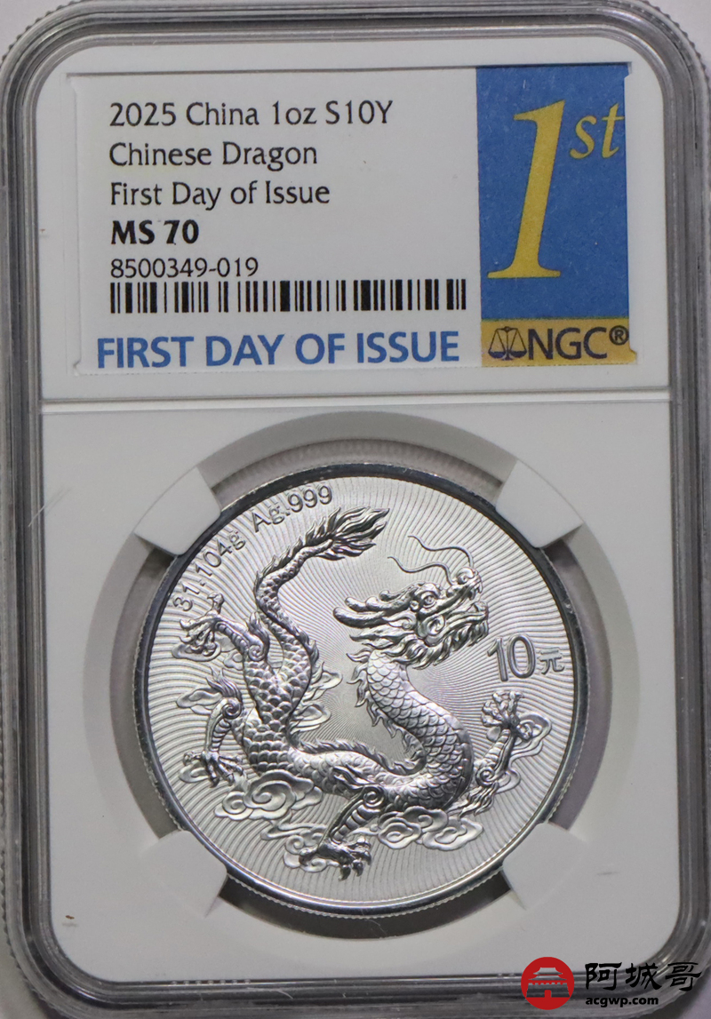 Lot:19 2025年中国龙银币 NGC MS70首日标