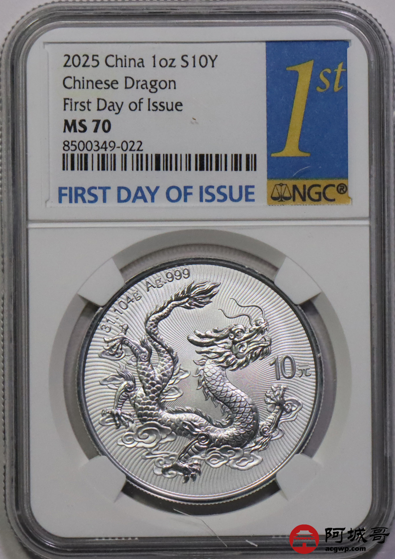 Lot:22 2025年中国龙银币 NGC MS70首日标