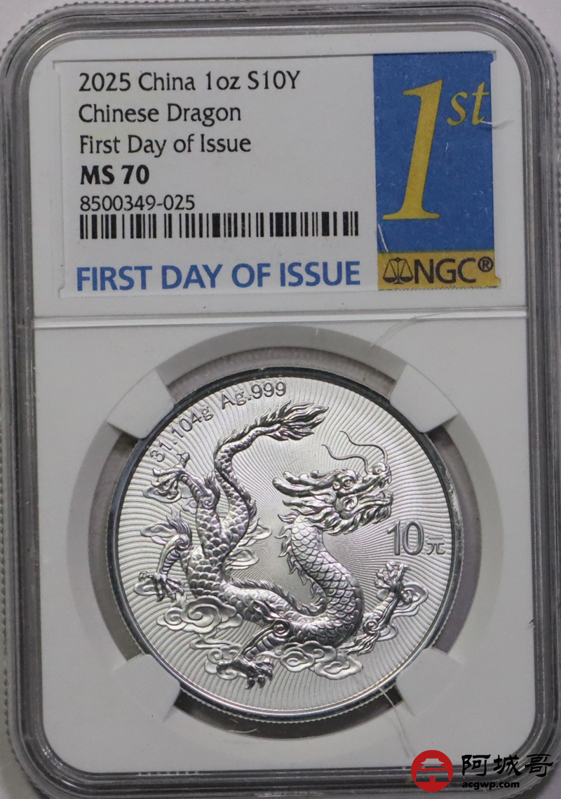 Lot:25 2025年中国龙银币 NGC MS70首日标