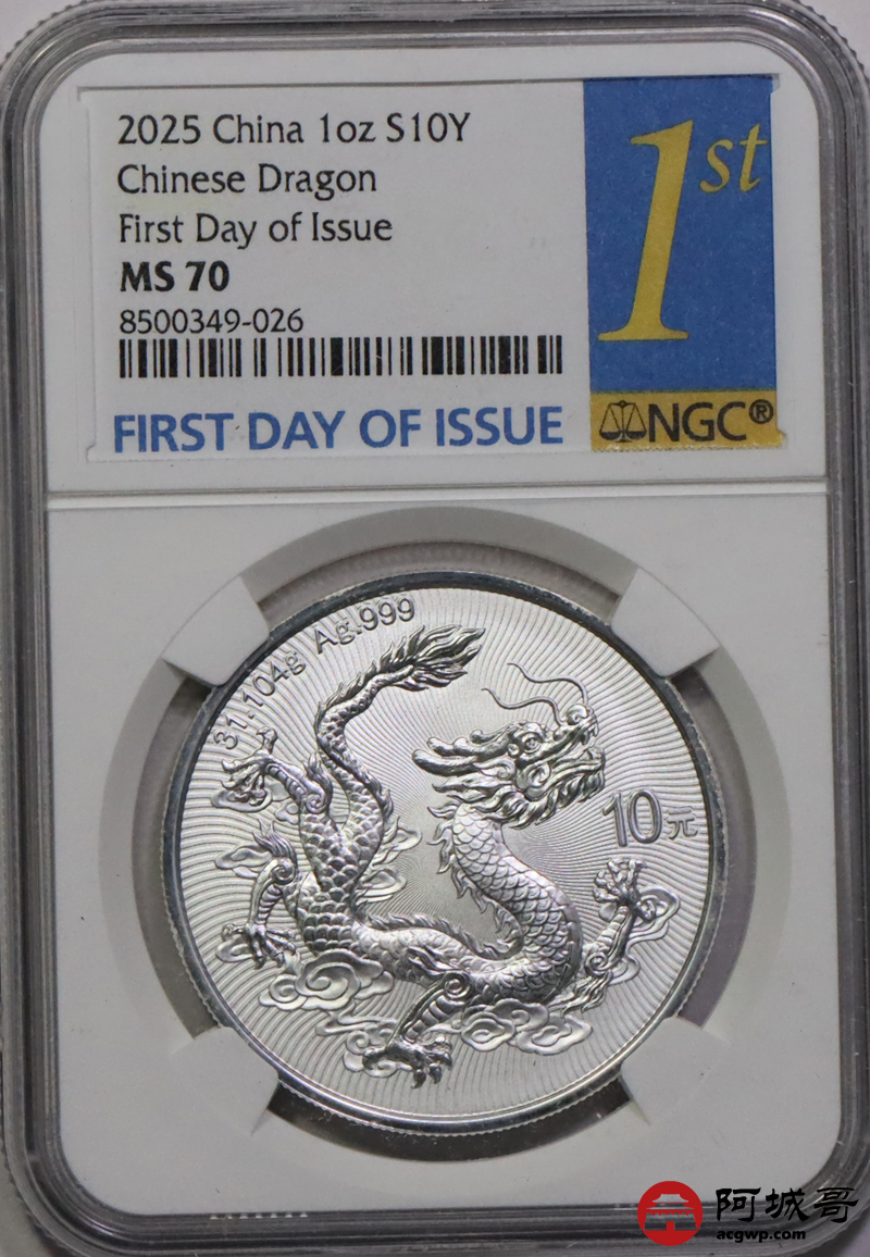 Lot:26 2025年中国龙银币 NGC MS70首日标