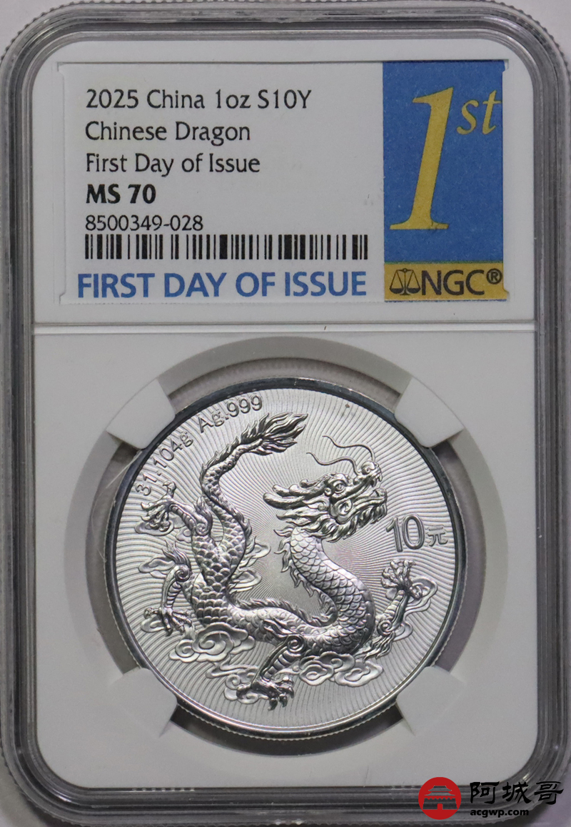 Lot:28 2025年中国龙银币 NGC MS70首日标