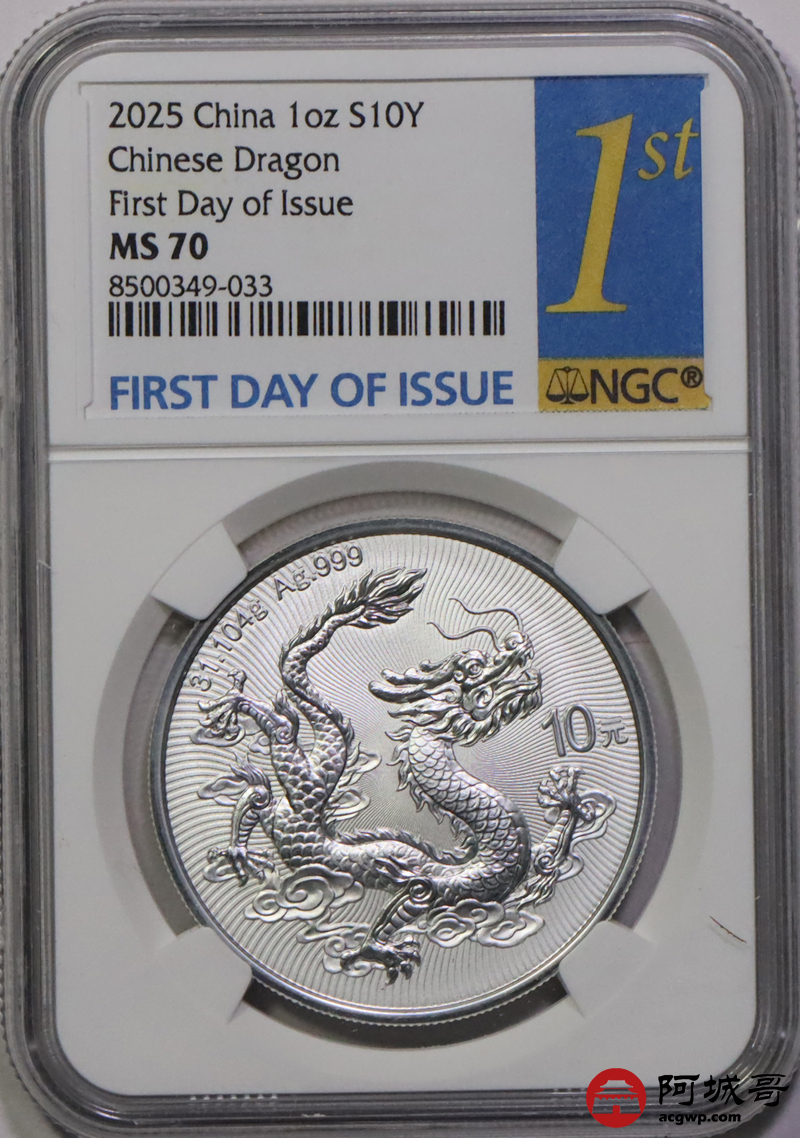 Lot:33 2025年中国龙银币 NGC MS70首日标