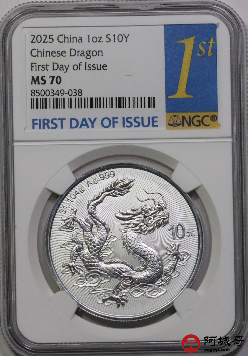 Lot:38 2025年中国龙银币 NGC MS70首日标