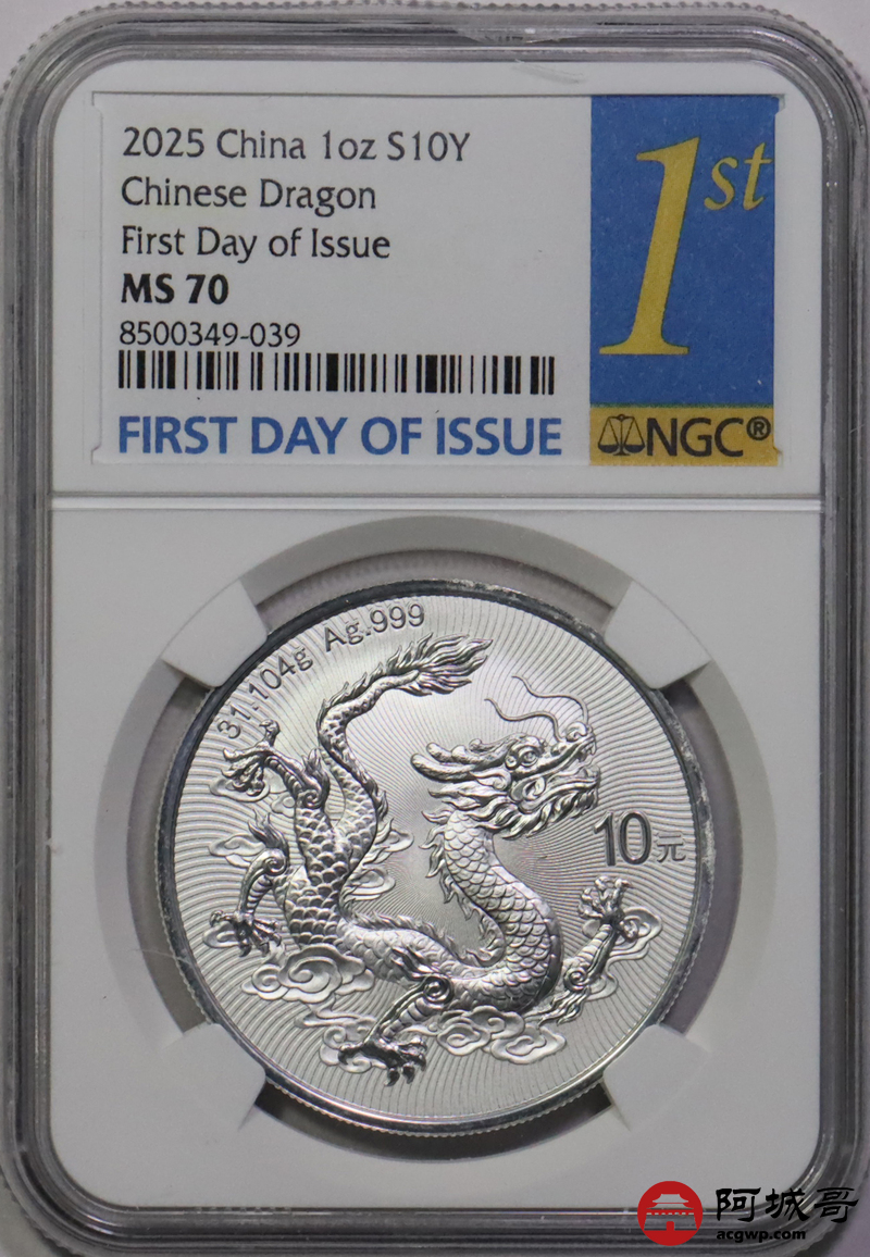 Lot:39 2025年中国龙银币 NGC MS70首日标