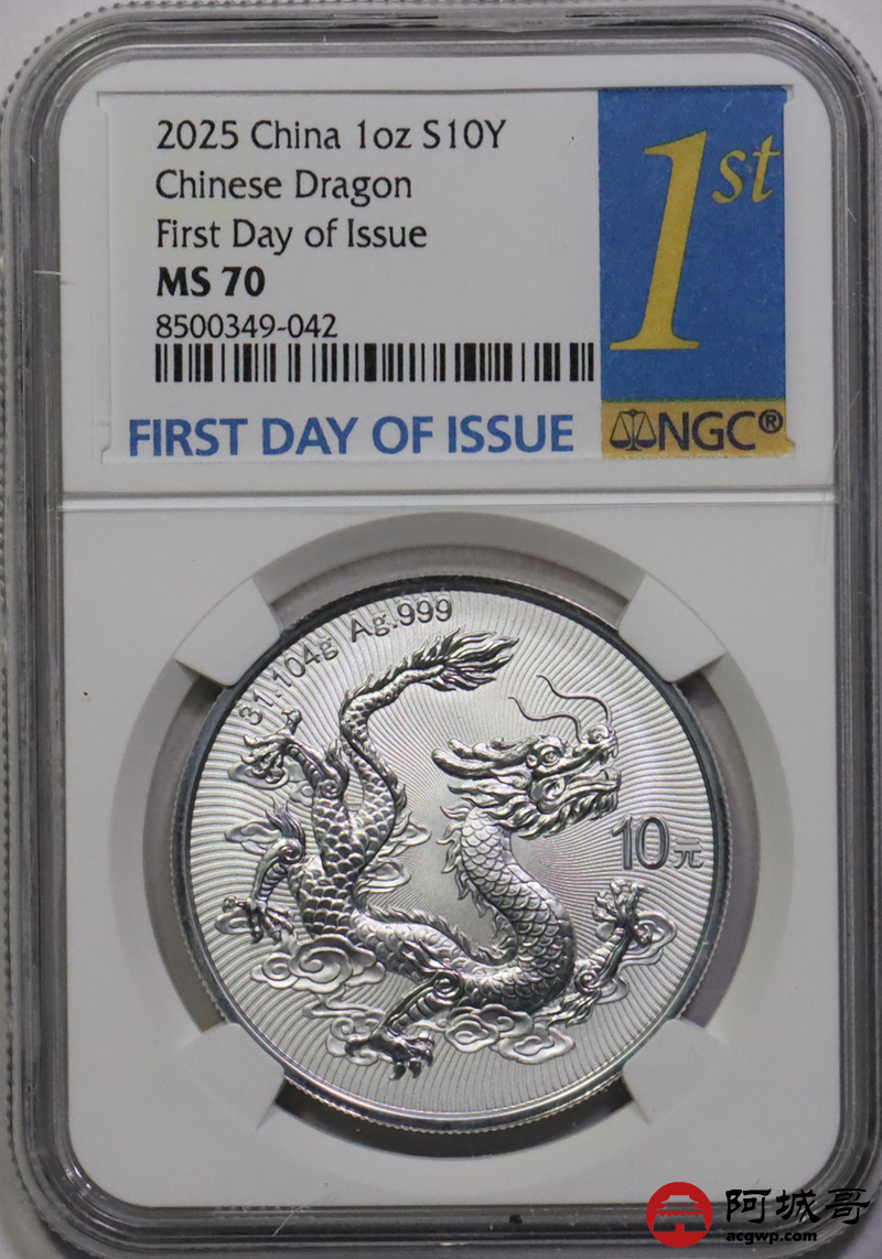 Lot:42 2025年中国龙银币 NGC MS70首日标