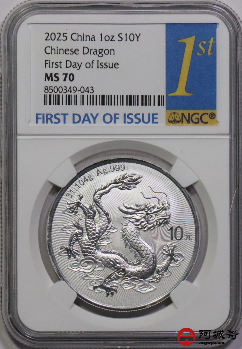 Lot:43 2025年中国龙银币 NGC MS70首日标