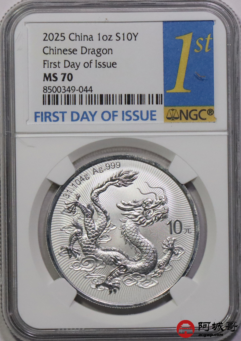 Lot:44 2025年中国龙银币 NGC MS70首日标