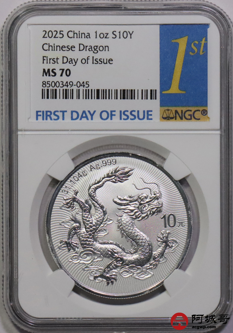 Lot:45 2025年中国龙银币 NGC MS70首日标