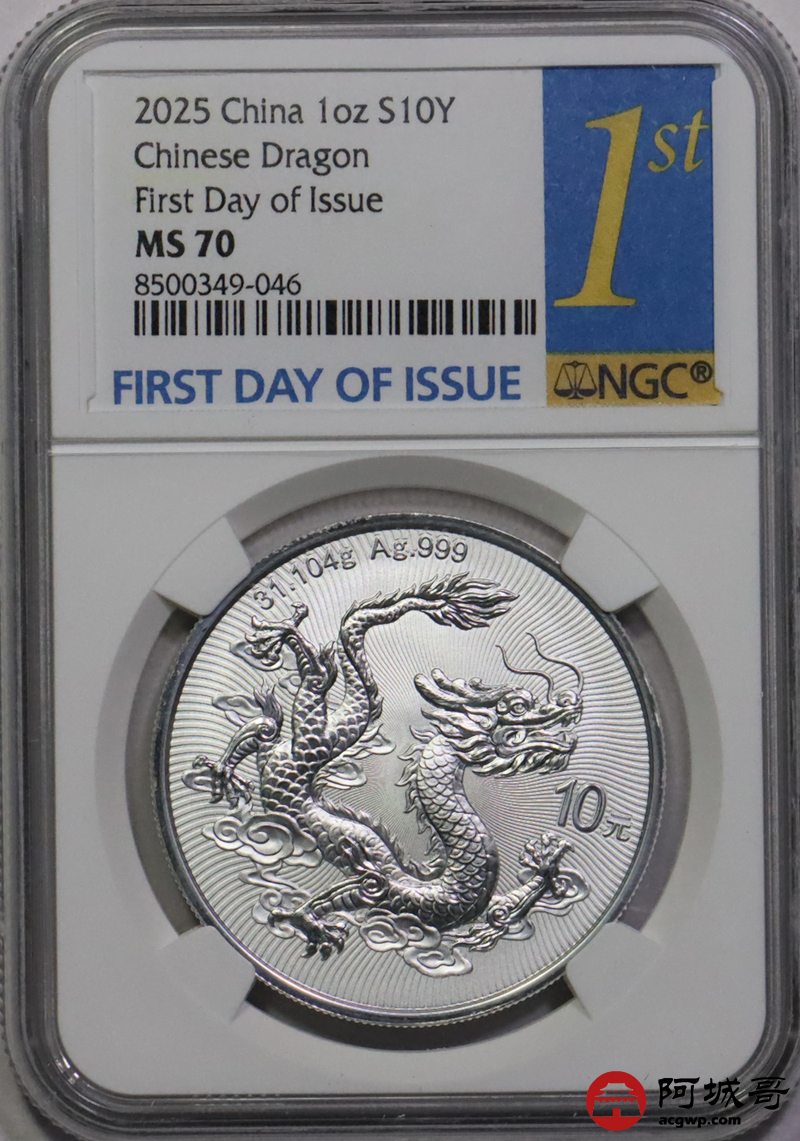 Lot:46 2025年中国龙银币 NGC MS70首日标
