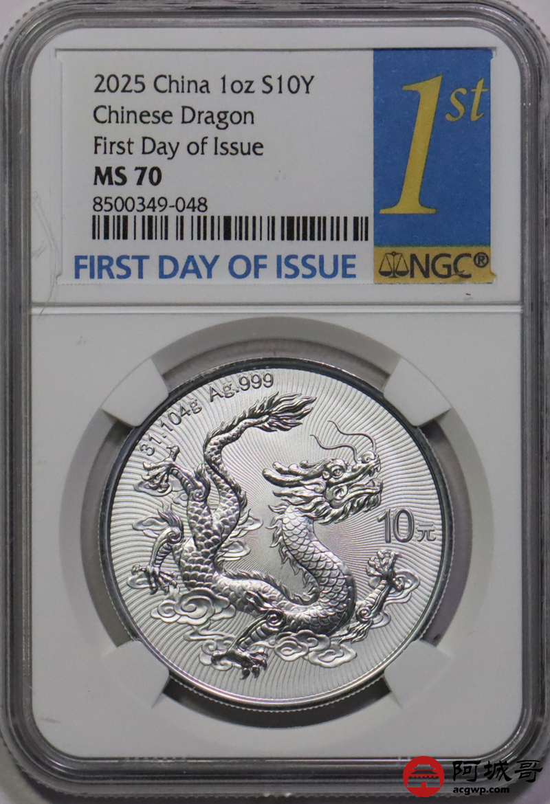Lot:48 2025年中国龙银币 NGC MS70首日标
