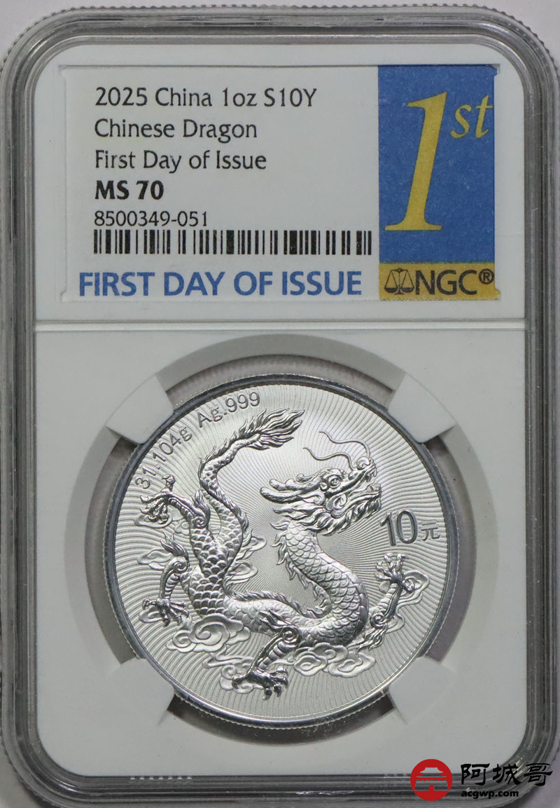 Lot:51 2025年中国龙银币 NGC MS70首日标